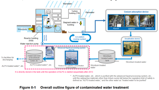 Figure 2: Principle flow diagram for the generation and treatment of contaminated water (source: TEPCO [5])