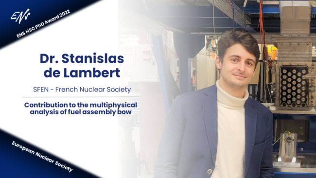 Dr Stanislas de Lambert wins ENS High Scientific Council PhD Award 2022 The ENS HSC brings together 22 scientists from 16 countries. For the 2022 edition HSC received eleven nominations from ENS member Societies: namely the Belgian, Finnish, French, German, Hungarian, Israeli, Italian, Dutch, Spanish, UK and Ukrainian Nuclear Societies. ENS Members Societies provided candidates’…