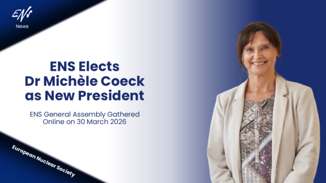 ENS Elects Michèle Coeck As New President Dr Michèle Coeck The European Nuclear Society (ENS) is pleased to announce the election of Dr Michèle Coeck as its new President, who assumes her duties on 1st April 2026, replacing the incumbent President, Dr Eng. Stefano Monti, continuing to support the ENS Secretariat as an active Past…