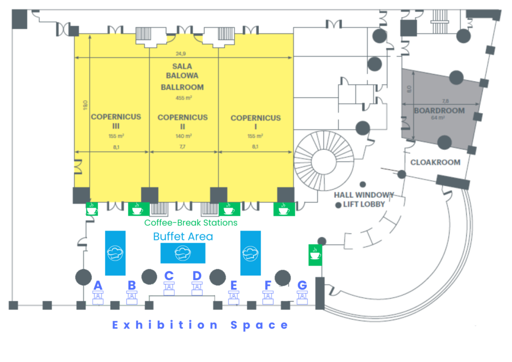 The RRFM 2024 exhibition will take place in front of the conference rooms in a space that also serves for catering during the coffee breaks.