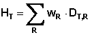 The equivalent dose HT,RSymbol for roentgen is the product of the organ absorbed doseThe absorbed dose D is the quotient of the average energy tr... DT,RSymbol for roentgen averaged over the tissue/organ T generated by the radiationEnergy dispersion through matter or space. In atomic physics... RSymbol for roentgen and the radiationEnergy dispersion through matter or space. In atomic physics... weighting factorSee tissue weighting factor. WR.
