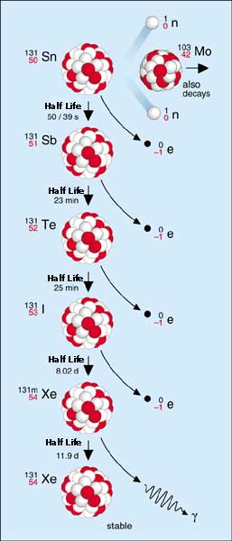 Nuclides generated by fission or subsequent radioactive decay of nuclides directly generated by fission; e.g.: Kr-85, Sr-90, Cs-137.