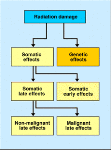 RadiationEnergy dispersion through matter or space. In atomic physics... exposure may entail somatic and inheritable effects. Somatic effects occur in the persons exposed themselves, inheritable effects can only manifest themselves in descendants. In the case of somatic radiationEnergy dispersion through matter or space. In atomic physics... effects, a distinction is drawn between stochastic and deterministic radiationEnergy dispersion through matter or space. In atomic physics... effects.