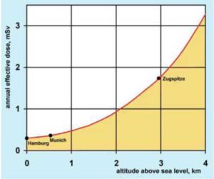 Cosmic radiationRadiation originating directly or indirectly from extraterre... exposure as a function of altitude, latitude 50° north