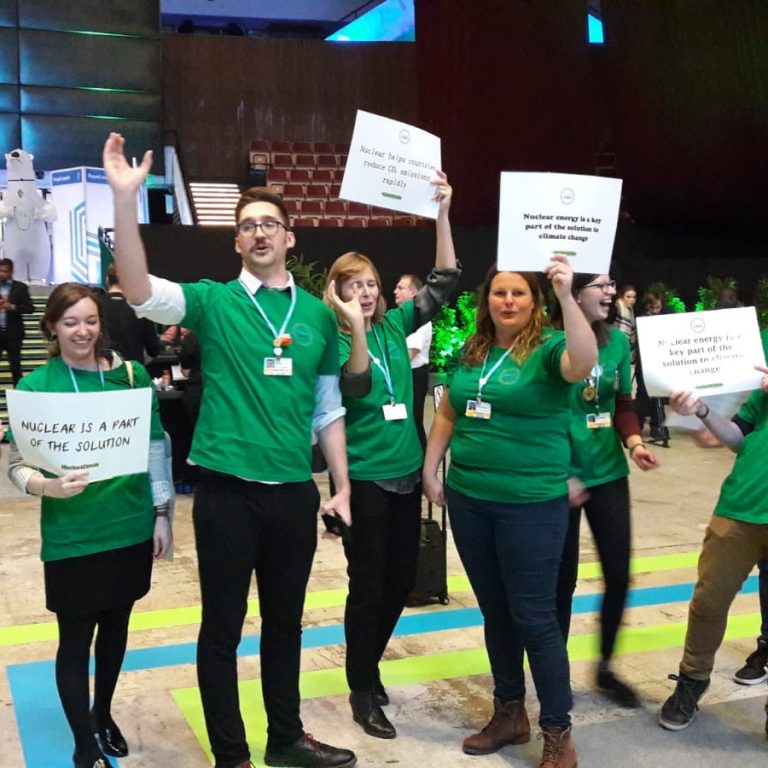 Nuclear for Climate has a global presence on social media and in-person. There have been delegations at international conferences, such as the United Nations COPs from 21 to 29, where activists promoted nuclear energy as a key player in negotiations around climate change. The delegation also hosted side events, flashmobs and participated in panel discussions with representatives from environmental NGOs, the IAEA and national delegates.